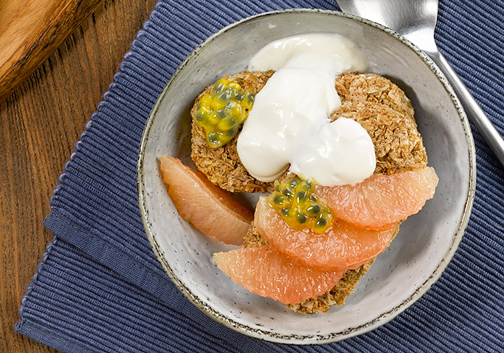 • Legg to Weetabix i en skål, topp med yoghurt, grapefruktbiter og fruktkjerne som er skrapt ut av pasjonsfrukten og nyt!